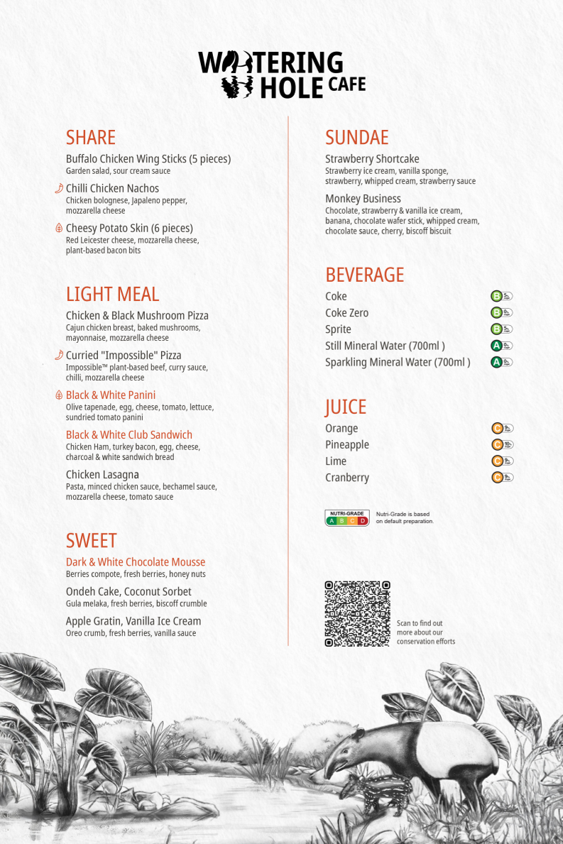 Nestled amidst the lush greenery of Mandai Lake Road, the Watering Hole Cafe is not just a cafe; it’s a serene escape for both nature enthusiasts and casual visitors alike. Located within the vibrant Rainforest Wild Asia environment, this charming spot invites you to indulge in a delightful culinary experience while enjoying breathtaking views of wildlife, including the celebrated Malayan Tapir.